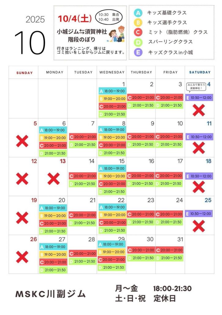 | キッズクラス | 火/木 18:00~19:30 土 10:30~12:00 |