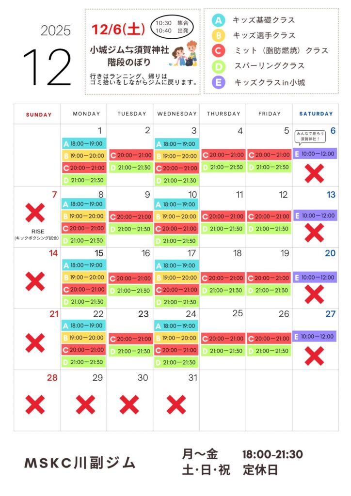 | キッズクラス | 火/木 18:00~19:30 土 10:30~12:00 |