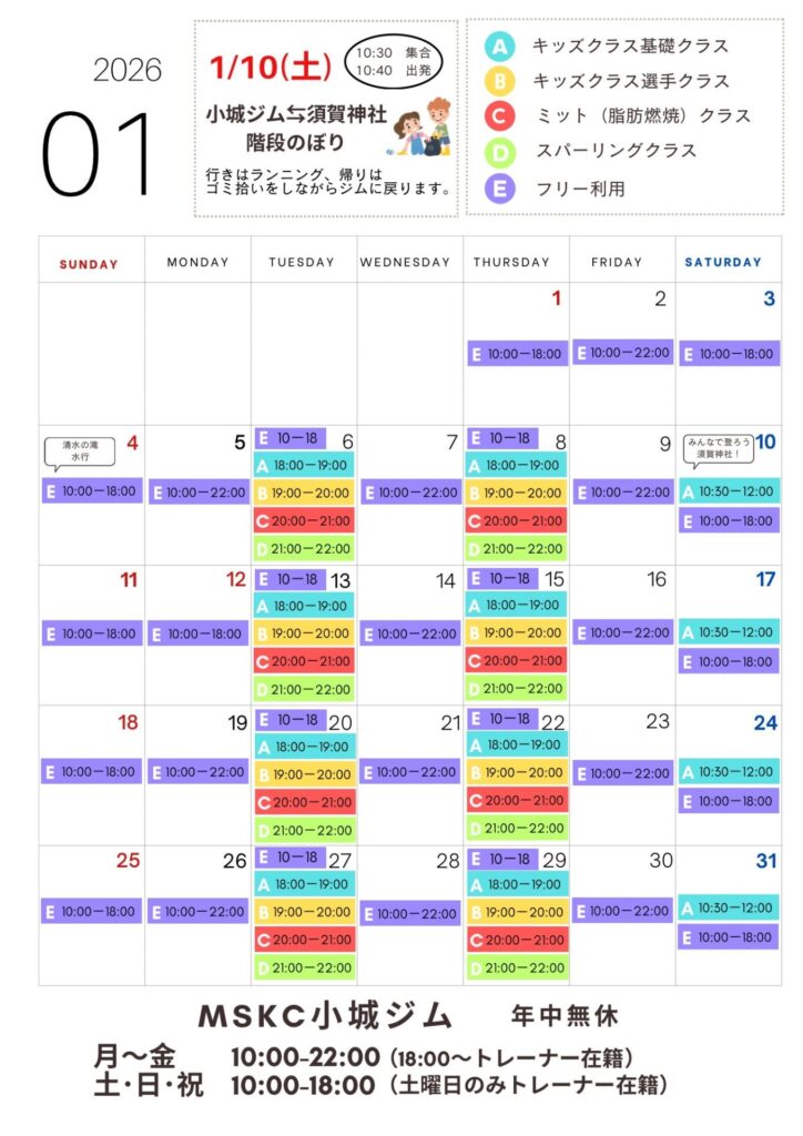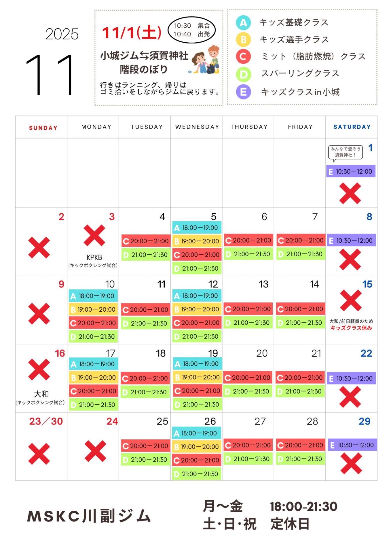 | キッズクラス | 火/木 18:00~19:30 土 10:30~12:00 |