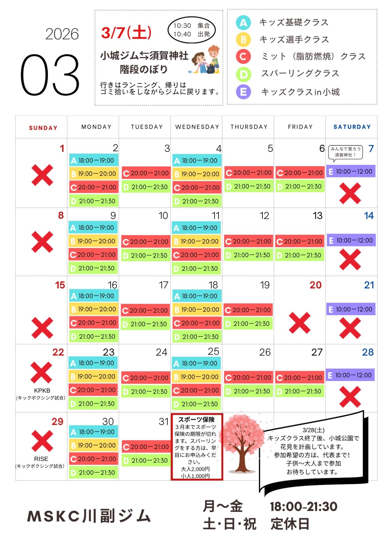 | スパーリングクラス | 火/木 21:00~22:00 |